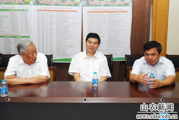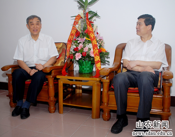 9月7日上午,泰安市委书记杨鲁豫一行专程来校看望束怀瑞和于振文两位中国工程院院士,与院士和学校领导座谈交流,并代表市委市政府向全校教师祝贺节日。泰安市委常委、市委秘书长朱玉合,市政府副市长林华勇,学校领导陪同看望并座谈。