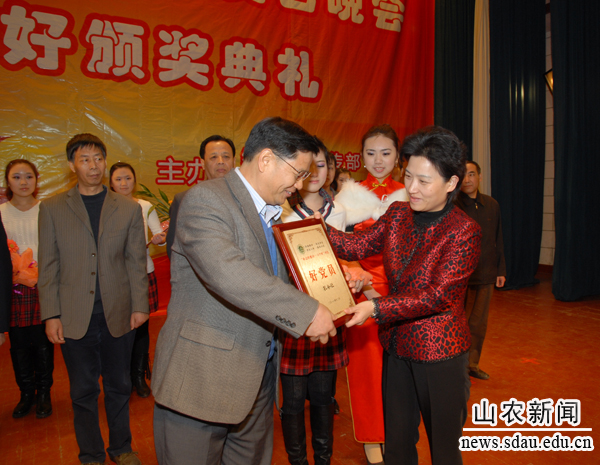 节目中间的“六个好”颁奖典礼一次次把晚会的热烈氛围推向高潮。第二届“身边的感动――六个好”评选活动,是围绕我校创先争优、争做科教兴农先锋而开展的一项重要活动。在创先争优活动中,各基层党委高度重视,广大党员积极参与,奋发向上,求真创新,涌现出一大批优秀团队和个人,此次受到表彰的“六个好”就是他们中的优秀代表。“身边的感动――六个好”评选活动得到全校师生的热烈响应,大家踊跃投票,推荐身边的榜样。经过网络投票、现场投票,最后,泰山学者孔令让教授获得好党员称号、外国语学院学生张敏获得好团员称号、植保学院李向东教授获好教师称号、体艺学院学生黄帅获好学生称号、经管学院办公室副主任王园林获好职工称号、农学院退休教授孙兰珍获好长辈称号。另外54名正式候选人获得提名奖。校领导依次走上主席台,向获奖者颁奖、祝贺,合影留念。