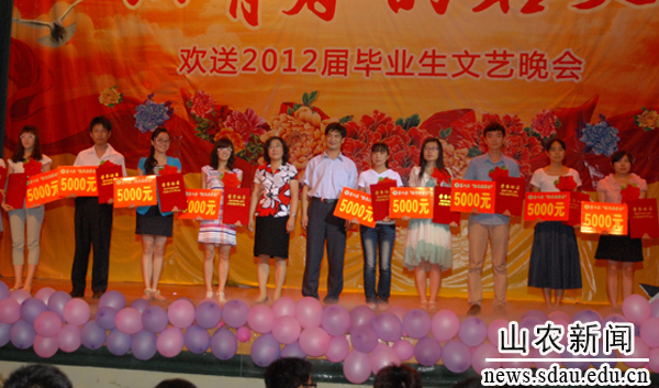文艺演出中间还颁发了第十届“校长奖学金”,20名优秀毕业生每人获得5000元奖励。毕业生代表深情表达了对学校老师的感激之情,并表示今后将在新的起点上锐意进取,全面发展,努力成长为可堪大用、能负重任的栋梁之材,为母校增光添彩。