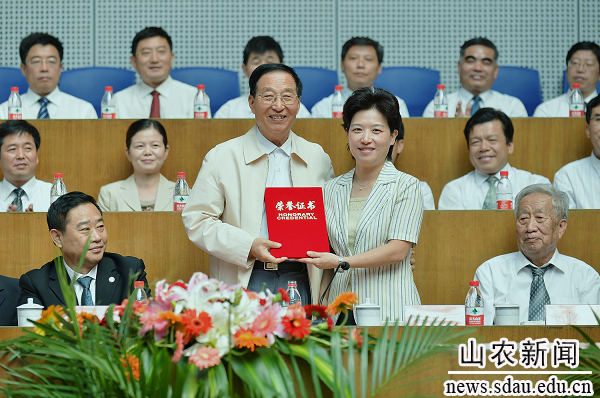校长温孚江为我校首届杰出校友奖获得者李振声院士颁发奖章