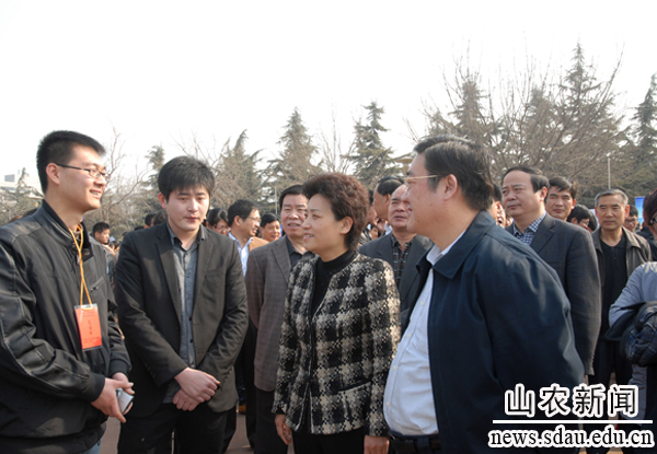 上午九点多,省人力资源和社会保障厅副厅长李伯平、高校毕业生就业处处长高德敬,泰安市人力资源和社会保障局副局长刘增祥、人才交流服务中心主任卞峰德,学校领导邢善萍、张敬和、董树亭、张宪省、董新胜、车先礼、朱莉、高东升、嵇景涛等来到现场,与用人单位和毕业生热情交流,了解情况。