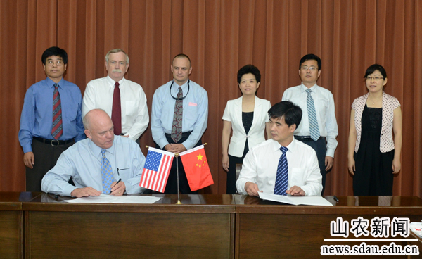 邢善萍代表学校向美国客人表示热情真诚的问候。她简要介绍了山东的经济、教育情况和富有特色的历史与文化,并从四个方面介绍学校的优势和特色。一是办学实力雄厚,位居全国百强。学校在中国高校中排名102位,其中自然科学排名85位,全国农业高校中排名第6位,在山东省名列前茅。二是学科门类齐全,专业优势突出。学科涵盖农、理、工、管、经、文、法、艺术、教育学等9大学科门类。设有12个博士后科研流动站,49个博士点,99个硕士点,86个本科专业。拥有作物栽培与耕作学、果树学2个国家重点学科,6个学科排名全国前十。三是校风学风优良,科教成果丰硕。获得国家级教学成果奖8项。培养了以7位两院院士为杰出代表的各类优秀人才17万余人。近年来,毕业生就业率92%以上,入选全国高校就业五十强。四是办学理念开放,国际交流广泛。与美国普渡大学、佛罗里达大学、英国皇家农学院等29所国外院校建立校际合作关系。现有3个中德合作办学专业,2个中英合作办学专业,1400余名中外合作办学在校生。