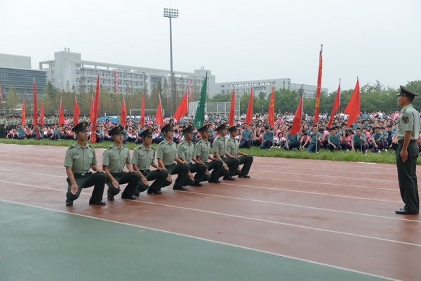 9月2日上午,2014级新生军训开营式分别在南校区体育场和东校区体育场举行,全体2014级新生身着统一服装,以饱满的精神、昂扬的斗志迎接为期十天的军训。