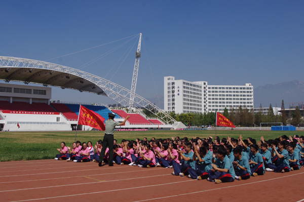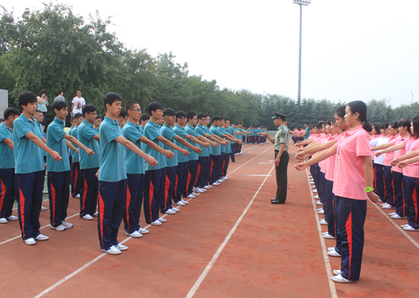 教官手把手训练学员摆臂姿势(机电学院供稿)