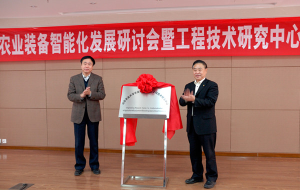 温孚江在会上致辞,对来宾表示欢迎,对中心成立表示祝贺。他指出,近年来,适应农业规模化、精准化、设施化的需要,加强以信息化技术为先导的智能化、自动化农机技术与装备的研究亟待加强。农业装备智能化工程技术研究中心是学校继成立农业大数据中心后的又一个多学科融合平台。希望中心充分发挥多学科平台优势,为现代农业、生态农业、智慧农业的发展提供技术、装备、规范、农艺等的支撑,提升中国的农业装备机械化、自动化、智能化以及农业生产标准化和信息化水平。要积极探索建立互惠互利、符合市场化和产业化要求的工作体制和运行机制,推进农业装备智能化工程技术研究中心工作持续、健康、快速发展。