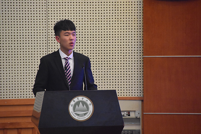 赵弘扬是我校机电学院车辆工程专业2015级学生,中共预备党员,智育成绩全院第一,荣获国家奖学金、山东省高等学校优秀学生、学校十佳大学生等18项校级及以上荣誉;荣获全国三维数字化创新设计大赛特等奖2项、山东省高校机器人大赛一等奖2项等省级创新创业竞赛奖励20项,授权实用新型专利2项,发表学术论文6篇;担任学院学生会创新发展部部长,2017级3班班主任助理等职务,组织创新创业活动,被评为“优秀学生干部”“最美机电学子”等。