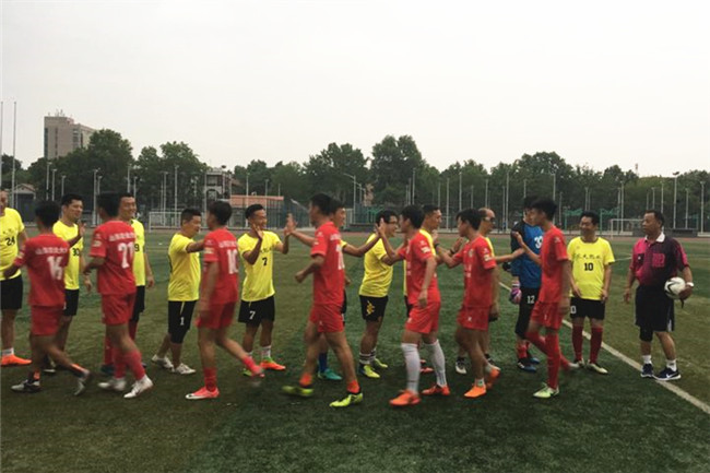 比赛结束后,教工队的老师与同学们一一握手道别,祝福大家一帆风顺,前程似锦。