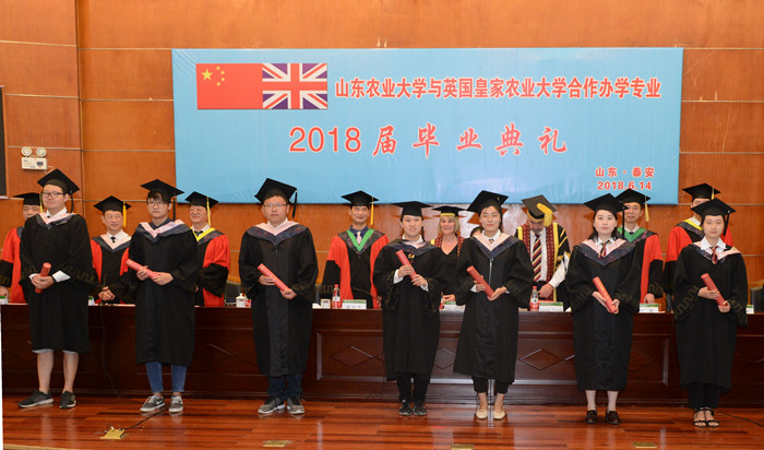 6月14日,中英合作办学专业2018届本科生毕业典礼在文理大楼报告厅举行。副校长高东升,英国皇家农业大学副校长露茜·马格丽特·梅瑞狄斯,中国项目主任斯蒂芬·托马斯教授等出席毕业典礼,为185名毕业生颁发学位证书,为优秀毕业生奖学金获得者颁奖。