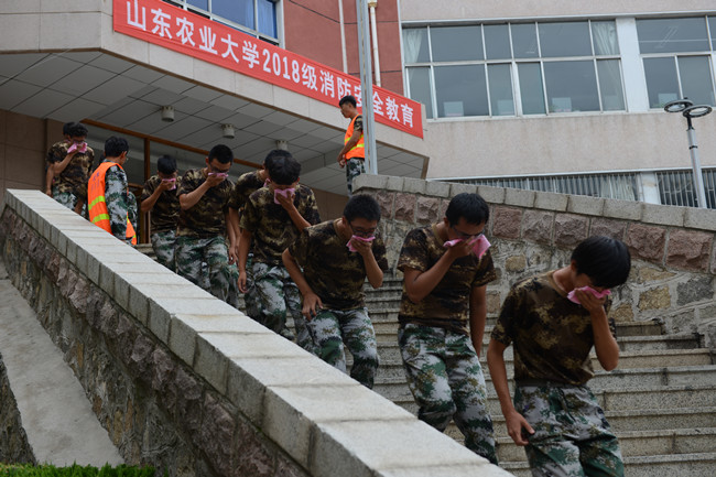 9月14日,学校在东校区组织学生开展消防演练活动,学生通过模拟图书馆火灾现场逃生、现场使用灭火器等学习消防安全知识。副校长吴衍涛,泰安市消防支队防火处周凯等出席活动。