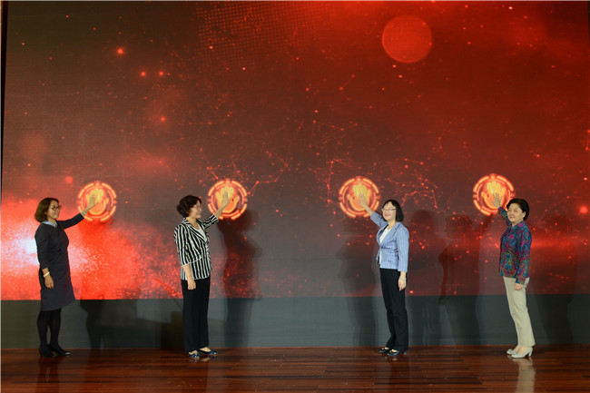 魏艳菊、张然、山东省教育工委宣教处副处长王莉以及泰安市妇联主席葛新共同按下活动启动按钮。