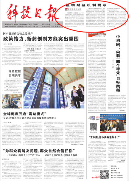 报眼,业内指在报头旁边的版面,一般用来刊登重要新闻或图片。《科技日报》作为党和国家在科技领域的重要舆论前沿,其报眼位置刊发的均为国内外“重量级”最新发现与创新成果。新学期以来,我校已先后两次登上《科技日报》报眼位置,上次是在9月11日,科技日报关注了我校郝玉金团队科研进展。