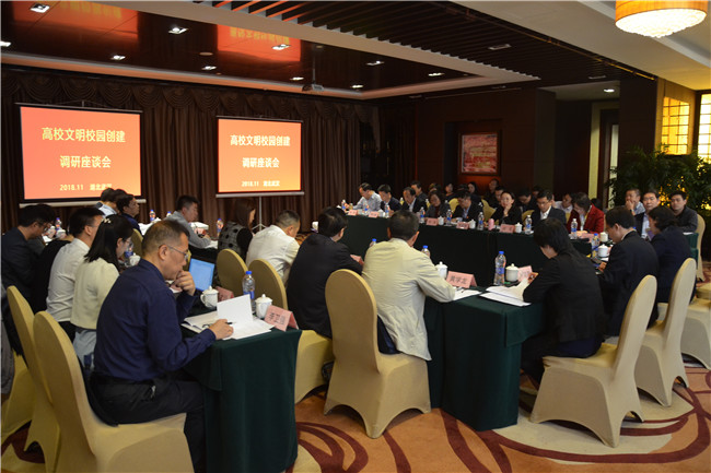 本次会议由中央文明办和教育部共同举办,旨在交流高校创建文明校园工作中的经验做法,查找存在问题,研究改进措施。中央文明办三局巡视员、副局长杨武军,教育部思政司思想教育与网络处调研员卢丽君,湖北省委宣传部副部长余红岚等出席会议。来自全国各地11所高校以及12个省市文明办、教育工委有关负责同志参加会议。