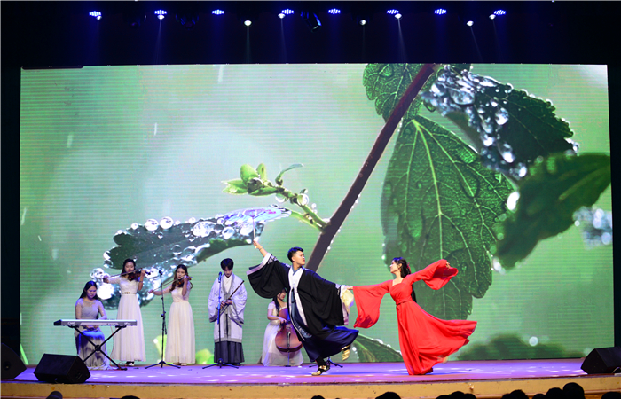 晚上的金秋音乐会是学院推出的重头戏。小提琴、钢琴和二胡独奏,民乐合奏,独唱、二重唱、大合唱,舞蹈等节目形式应有尽有,登台演员都是学校历次大型演出的台柱子,专业水准演出的感染力让师生们深深沉醉。《韵》《华》《实》三个章节步步递进,搭建起音乐的殿堂。婉转悠扬、安静旷达,铿锵有力、豪迈奔放,各种艺术风格错落交织,浑然天成。学院舞蹈队轻盈流畅的基本功展示和自己创演的舞蹈《忆•青衣》更是引起场内青年学生阵阵欢呼。