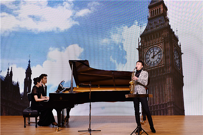 我校兼职教授、山东大学艺术学院歌剧中心主任王心教授也来到音乐会,现场演绎了《我不能够》《海恋》两首曲目。学校还邀请了获得法国圣摩尔国立音乐学院、法国巴黎高等国立音乐与舞蹈学院的古典萨克斯管演奏双硕士学位,目前为法国塞尔玛乐器公司国际艺术家的解亮,在音乐会上用萨克斯独奏《小查尔达什舞曲》《额尔古纳河的呼唤》两首曲子。音乐会在岱下青年合唱团演绎的《英雄赞歌》《峥嵘往昔》中落下帷幕。