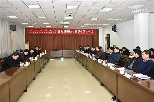 张宪省充分肯定校企合作联合培养专业学位研究生的模式。他说,农大肥业与山东农大一直是友好合作的朋友、共同发展的伙伴,有着很深的渊源和密切的联系,感谢农大肥业长期以来对学校建设发展给予的支持。学校和农大肥业共建“振兴菁英班”,联合培养专业学位研究生符合教育部的培养目标,也是双方合作共赢的好事。这对学校来说是创新开放办学机制,改革研究生培养模式的重要举措;对农大肥业而言是围绕经济社会发展需求,壮大人才队伍,推动企业转型升级、提高企业创新能力的重要探索。希望双方紧扣培养目标,明确培养定位,细化培养方案,建立良好的沟通交流渠道,及时发现、解决问题,定期总结经验,培养出更加突出专业实践应用,更加突出面对一线生产实际,更加突出培养应用性、实践性和职业化要求的研究生,为我省全力打造“乡村振兴”的齐鲁样板提供人才和智力支持。