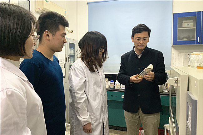 高峥(左一)指导学生开展实验