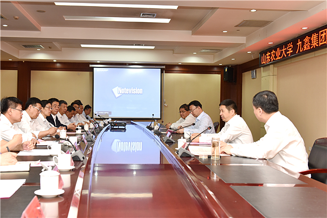 张宪省在致辞中介绍了学校发展历程和办学特色,着重介绍了我校学科建设发展和科研实力等情况,他说,一直以来,学校与东平农业产业发展联系紧密,先后建立产学研战略联盟、作物学博士后科研工作站、园艺学博士后科研工作站和教学科研与就业实践基地等,一大批专家学者把科研项目放在东平实施、让科技成果在东平转化,取得显著成效。张宪省强调,本次合作,将进一步拓宽山东农大与东平合作的领域,打通校地在工业领域的合作渠道。希望以本次签约为契机,九鑫集团能充分发挥自身优势,在学生就业实习、社会实践等方面继续给予大力支持。学校将充分发挥智力和科技优势,积极对接企业发展需求,让学校更多的科技成果在九鑫和东平落地生根、开花结果。