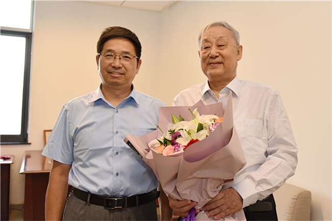 党委书记徐剑波亲切看望了中国工程院院士束怀瑞,向他赠送鲜花并致以诚挚的问候和节日的祝贺,对他多年来为学校发展所作的贡献表示敬意和感谢,并详细询问了束怀瑞院士的身体状况与工作、生活情况,向他介绍学校发展近况。徐剑波围绕学校加快“双一流”建设、师资队伍建设、科学研究、人才培养等工作,与老先生进行了深入交流探讨,认真听取他的意见建议,恳请他继续为学校发展建言献策。