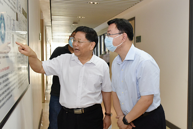 张涛一行参观了学校办学设施,实地了解学校建设发展情况、办学特色和科研条件等。在作物生物学国家重点实验室,农学院教授孔令让、园艺学院教授段巧红等向张涛介绍了目前科研进展和下步攻坚打算。