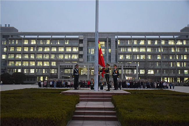 “一二·九”运动85周年之际,12月9日上午7点,我校分别在北校区一号楼前和南校综合楼广场举行纪念“一二·九”运动升旗仪式。