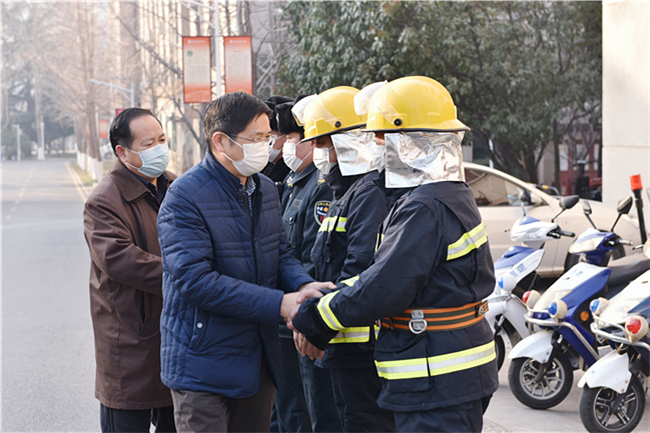 每到一处,张宪省等都热情地与在岗职工一一握手,并与他们亲切交谈,听取寒假春节期间学校安全保卫、供水供电、医疗保障等方面的安排,详细了解他们的生活情况,对他们爱校护校、舍小家顾大家的无私奉献精神表示赞赏,感谢他们的辛苦付出。张宪省说,过去的一年,学校各项工作都取得了较好进展,这与每一位师生员工的贡献密不可分。寒假期间,尤其在疫情防控期间,安全责任重大,希望大家继续发扬奉献精神,尽心履职,严格落实学校各项防控要求,做好各项防护工作,把好关、守好门,切实提供优质高效的后勤服务和安全保障。