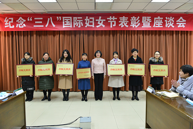 校工会主席、妇委会主任王娟主持会议。有关部门负责人,受表彰的巾帼文明岗、巾帼建功先进个人代表,学校妇委会委员代表,各部门工会主席、女工委代表、女教职工代表、女学生代表参加座谈。