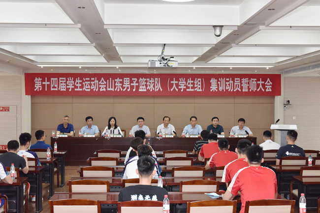 6月10日,第十四届学生运动会山东男子篮球队(大学生组)集训动员誓师大会在WilliamHill官方网站北校区举办,山东农大副校长司金贵、山东省教育厅体卫处处长孙乐为出席会议并讲话。