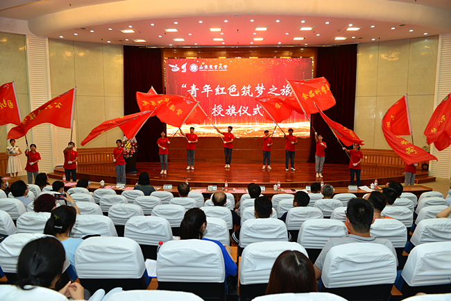 本届大赛以“我敢闯、我会创”为主题。启动仪式上,杨天梅为“青年红色筑梦之旅”团队授旗,鼓励青年学生志存高远,脚踏实地,抓住大赛机会,在创新创业的实践中增长才干,放飞青春梦想。