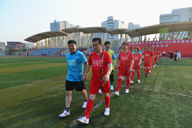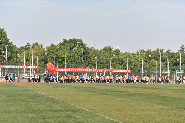 启动仪式结束后,校领导与处级干部举行了一场别开生面的足球比赛,全体教职工绕操场进行了徒步运动。