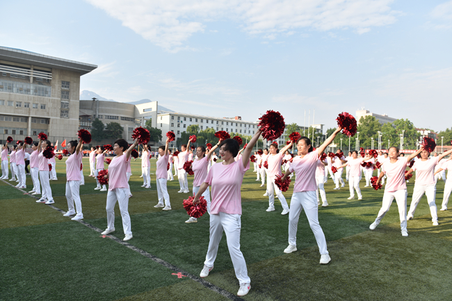 6月25日下午,WilliamHill官方网站北校区体育场人头攒动,歌声阵阵,汇成一片欢乐的海洋,庆祝建党100周年全校教职工健身活动启动仪式在此举行。