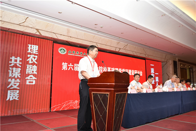 张宪省对会议召开表示祝贺,向与会代表介绍学校办学情况及近期取得的办学成绩,并介绍了学校基础理学学科建设成效。他说,基础理学学科是农林学科的重要基础,在“新农科”“新工科”“新理科”等学科建设背景下,我国农林院校理科如何紧跟时代与农、工、文学科深度交叉融合,如何加快推进一流本科教育,已经成为农林院校基础理科面临的重要问题之一。本次学术研讨会的举办,必将进一步推动学术交流、加深了解、增进友谊,提高相互间的合作与交流水平。他希望以这次会议为契机,大家进一步加强沟通合作,兄弟院校继续指导、支持、关心和帮助山东农大基础理学学科建设,实现互利共赢,共同发展。