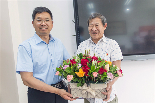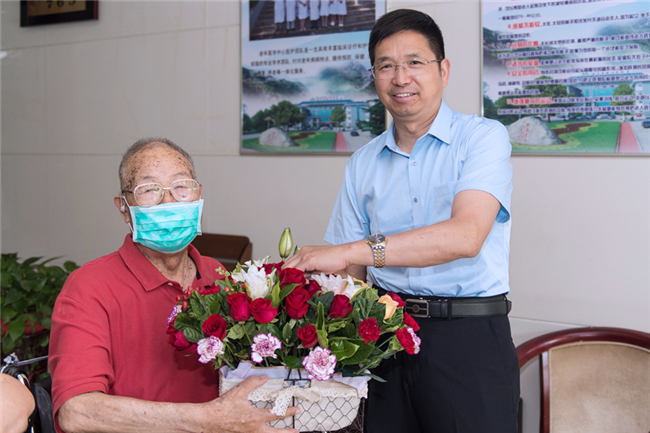 张宪省首先来到泰山疗养院,看望在这里住院疗养的91岁的李晴祺教授。张宪省关切地询问李老的身体和生活情况,感谢他在科技创新和人才培养方面为学校作出的重要贡献,希望他保重身体,健康快乐。”李晴祺感谢学校领导的关心,祝愿学校发展取得更大成就。