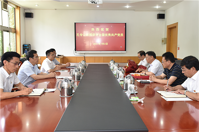 7月2日,进京参加“七一”庆祝活动的农学院孔令让教授返回学校,党委书记徐剑波带队热诚欢迎,并与孔令让教授座谈交流参加中国共产党成立100周年大会等“七一”庆祝活动和聆听习近平总书记重要讲话的体会和感悟。