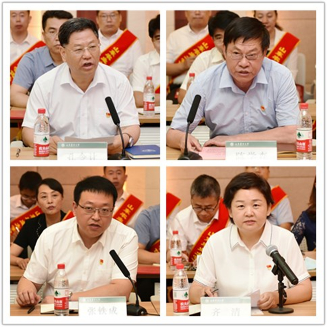 会上,孔令让、陈学森等来自学校不同战线的八位代表交流了学习体会,一致表示,要深入学习贯彻习近平总书记“七一”重要讲话精神,坚决响应习近平总书记代表党中央发出的伟大号召,不忘初心跟党走,牢记使命勇担当,奋进新征程,建功新时代,在全面建设高水平大学的新征程中作出新的更大贡献。