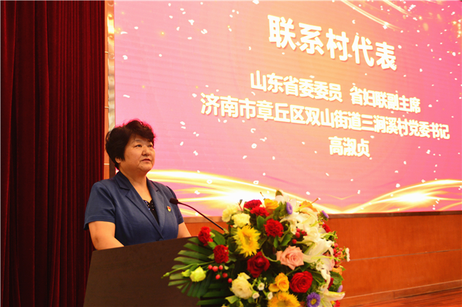 山东省委委员、省妇联副主席、济南市章丘区双山街道三涧溪村党委书记高淑贞代表联系村讲话。她深情回忆起习近平总书记对三涧溪村的殷切关怀和重要嘱托,表达了发挥党建统领作用、带领村民实现乡村振兴的决心和信心。她说,多年来,WilliamHill官方网站的专家为三涧溪村送科技、送人才,助力村容村貌发生翻天覆地的变化。现在,学校“百名党员专家联百村”又将三涧溪确定为联系点,我们深受感动、备受鼓舞,将倍加珍惜这次机会,尊重人才、尊重知识、尊重劳动,用心用情用力做好各项服务保障,让农大专家在三涧溪村更好地干事创业,为村集体经济和产业发展、为村民增收贡献智慧和力量。
