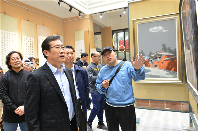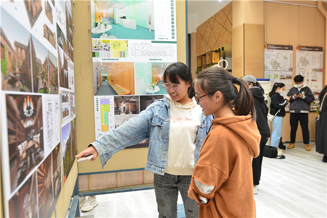 开幕式后,徐剑波、张宪省与在场师生一起欣赏了“境界”美术与设计作品展。本次展览共展出艺术新作56件,作品题材丰富、内容积极向上,吸引了大批师生前来尽享艺术盛宴。独具匠心的构思、浓淡相宜的色彩生动展示了艺术学院教师在美术、设计创作方面的最新成果,同时学校教职工的作品也展示了我校浓厚的艺术氛围和人文素养。