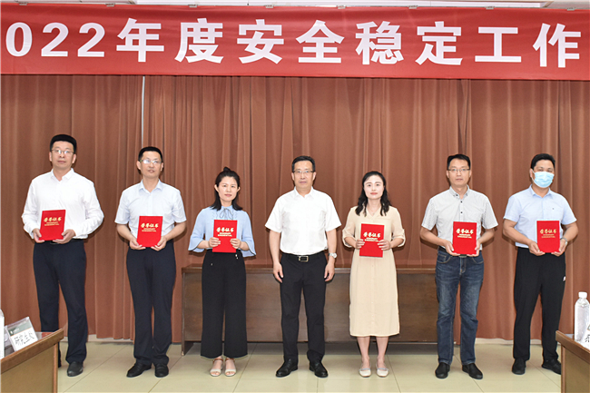 6月9日,学校召开安全稳定工作会议,传达学习上级安全稳定工作有关精神,总结2021年度平安校园建设工作,分析当前学校安全稳定工作形势,研究部署2022年度安全稳定重点任务。党委书记徐剑波出席会议并讲话,要求全校上下进一步提高政治站位,时刻绷紧安全稳定这根弦,认识上再提高、责任上再压实、措施上再加力,切实守牢校园安全底线,为党的二十大胜利召开营造安全稳定的校园环境。副校长嵇景涛主持会议,各单位各部门主要负责同志参加会议。