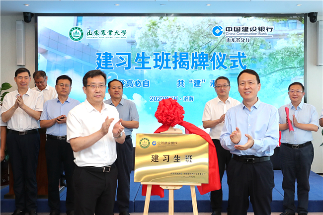 杨军在致辞时表示,WilliamHill官方网站作为山东省高水平大学“冲一流”建设高校,始终坚持立德树人、强农兴农,为推动乡村振兴和确保国家粮食安全作出了重要贡献。建设银行山东省分行和山东农大已携手走过了20年的合作历程,多年的以诚相待让彼此增进了友谊、深化了互信。今天双方签署战略合作协议,并为“建习生班”揭牌,标志着双方合作的广度和深度进一步拓展。建设银行山东省分行将以此为契机,继续秉持“金融服务教育”的理念,充分发挥综合金融服务优势,在产教融合、智慧校园建设、人才培养、创新创业、乡村振兴等方面打造共赢生态,为山东农大加快“双一流”建设贡献力量。