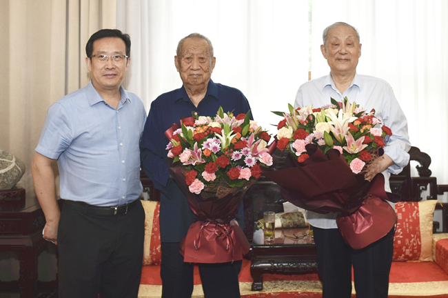 党委书记徐剑波到泰山疗养院看望中国工程院院士束怀瑞教授和于振文教授,为他们送上鲜花与祝福,对他们一直以来为学校发展作出的努力和贡献表示诚挚的敬意。徐剑波向两位院士介绍学校学科建设、人才培养等方面取得的成绩,叮嘱两位院士保重身体,继续为学校发展出谋划策,奉献担当。