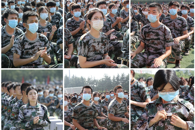 典礼现场举行了庄严隆重的校徽佩戴仪式,伴随着《携手登攀,共创辉煌》的校歌声,领导嘉宾为新生代表佩戴校徽,寄托传承与担当,表达关爱与期望,在场的全体新生共同佩戴校徽,正式成为山东农大的一员。典礼在全体新生的铮铮誓言中落下帷幕,“请党放心,兴农有我!请党放心,强国有我”,坚定有力、震撼人心的誓词在山农校园激昂回荡。