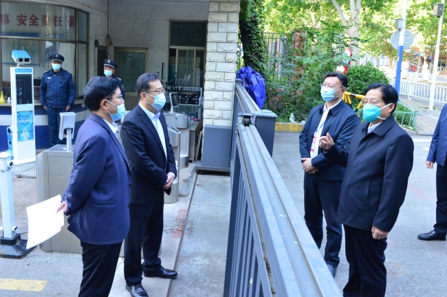 10月12日上午,山东省副省长孙继业来校检查督导疫情防控工作,看望慰问一线工作人员,要求学校从严从紧落实疫情防控各项措施,坚决打赢疫情防控阻击战。泰安市委副书记、市长张涛参加督导。党委书记徐剑波,党委副书记、校长冷畅俭汇报学校疫情防控措施落实情况、线上教学和服务保障等情况。
