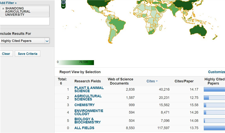截至目前,我校拥有5个ESI前1%学科,分别是:植物与动物科学、农业科学、化学、环境学与生态学和生物及生物化学。其中,植物与动物科学学科已进入ESI全球前1‰之列。