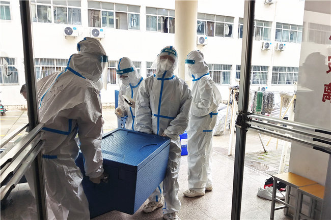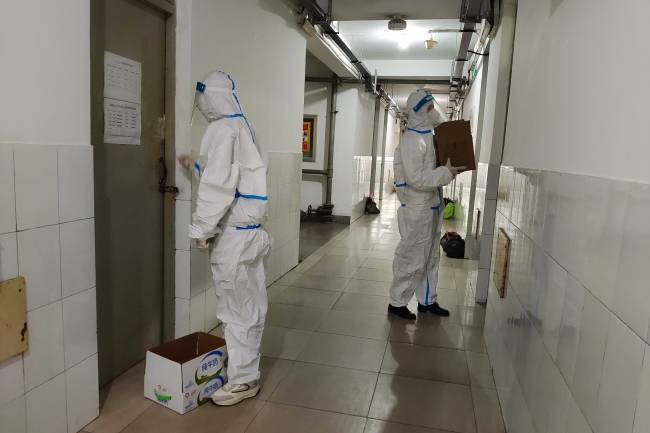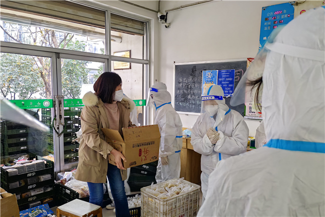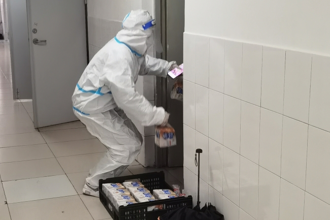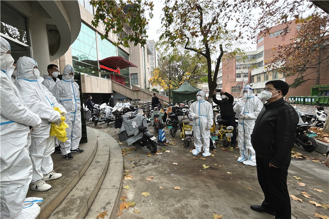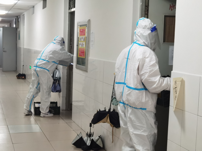 考虑到封控期间学生公寓成为了学生学习、生活的主阵地,学校还立即建立学生公寓疫情防控“四包”工作机制,也就是“校领导包楼宇”“正处级干部包楼层”“党员突击队队员包宿舍”“学生辅导员、学生骨干包学生”。从学校领导到学生骨干,参与“四包”工作机制所有人员都有明确的服务楼宇,从而自上而下把工作力量下沉到学生公寓一线,畅通与学生沟通交流渠道,了解学生思想动态等情况,精准地为学生做好服务保障工作,师生同心同向、同心同行、同心同力与新冠肺炎疫情“作斗争”。