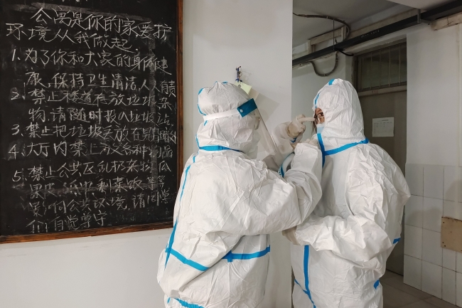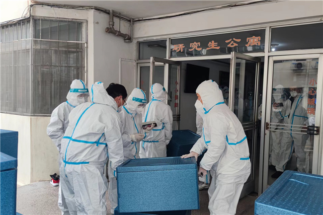 校医院医护人员全员出动,进入宿舍逐一进行核酸采样。保安、物业、宿管等坚守岗位,坚决守好疫情防控的每一道门,外防输入、内防反弹,最大限度降低交叉感染风险。