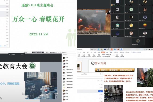 此外,未驻校的辅导员、班主任保持居家办公状态,通过线上班会、“点对点”连线等形式,将疫情防控政策、宿舍防火安全、防范电信诈骗等作为必讲内容,校内校外、线上线下联动,为学生提供教育管理服务保障。