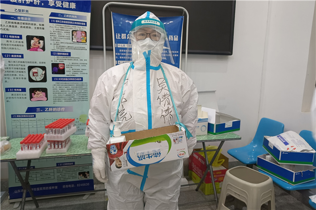 还有医务人员的孩子是毕业班,无法陪伴孩子上网课;有的同志因为封在学校,把仍在哺乳期的孩子交给了父母;有的怀孕的同志,克服妊娠反应,留守岗位;有的同志身患高血压、腰椎间盘脱出、膝关节退行性病变等慢性疾病,但仍在坚守岗位,参加核酸采集等工作。