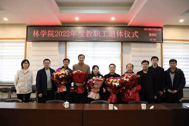 3月16日上午,林学院在岱宗校区7号楼106举行教职工退休仪式,向陈立新、王茜、王彦文、贾万达、李际红、李存华、贾宁等7位老师表达崇高的敬意,以最真挚的情谊欢送7位老师光荣退休。学院党委书记栗成良、院长鲁法典、办公室主任及相关专业负责人参加仪式。