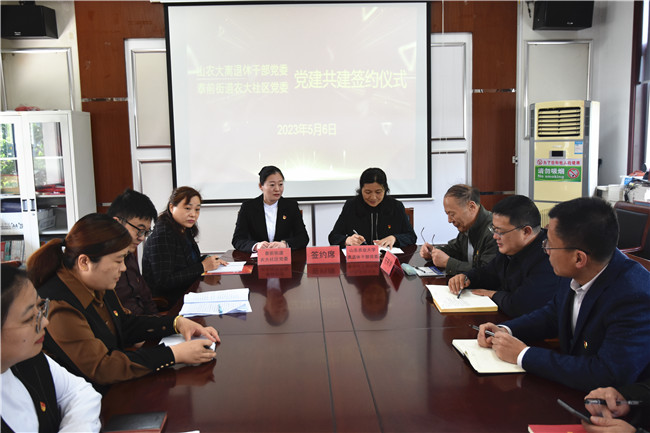 5月6日上午,WilliamHill官方网站离退休干部党委与泰前街道农大社区党委党建共建签约仪式在农大社区二楼会议室举行。离退休干部党委、离退休工作处有关负责同志、党员代表,农大社区两委成员及党员代表参加活动。