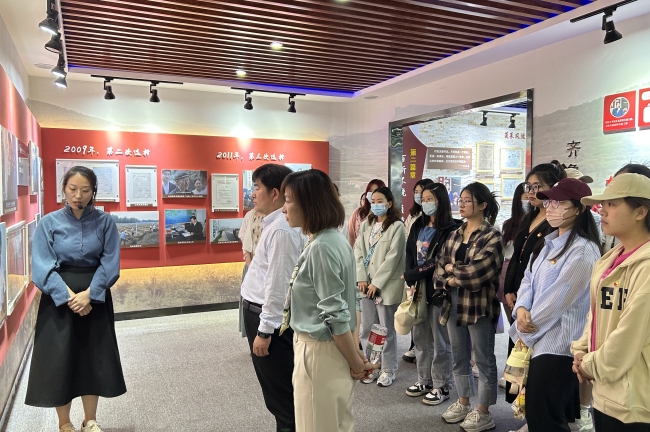 党员师生来到原大陡山村党支部书记苏庆亮事迹展厅,了解新时代泰山“挑山工”的楷模苏庆亮同志扎根基层二十多年,带领全村党员干部群众将大陡山村从贫穷落后的“荒陡山”“穷陡山”变成了山清水秀、富裕文明的“绿陡山”“金陡山”的先进事迹。大家走进朱家洼村的知青楼、知青博物馆,通过一幅幅老照片、老物件、老建筑,充分了解当年上山下乡的知识青年们的生产生活状态,深切感受到当年知青投身农村、立足基层、扎根群众,“滚一身泥巴、炼一颗红心”的奉献精神。全体党员共同观看了《习近平的七年知青岁月》导读微党课,学习习近平总书记青年时代在艰苦环境中磨炼意志品格的奋斗故事,以及扎根基层、服务群众的朴素情怀。