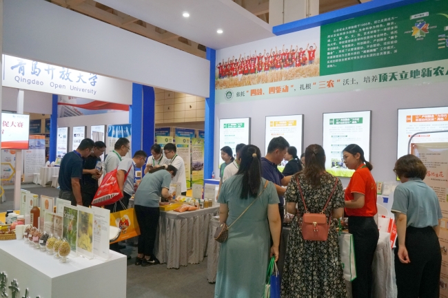 在主题展区,学校设置了以“扎根三农沃土,培养顶天立地新农人”为主题的创新创业成果展,展演项目均是获得第九届山东省“互联网+”大学生创新创业大赛金奖作品。此外,在创新创业教育高质量发展论坛上,我校“以螨治虫”和“秸衣锁肥”师生团队做了项目成长分享,汇报了我校创新创业教育的实践路径和育人方法。